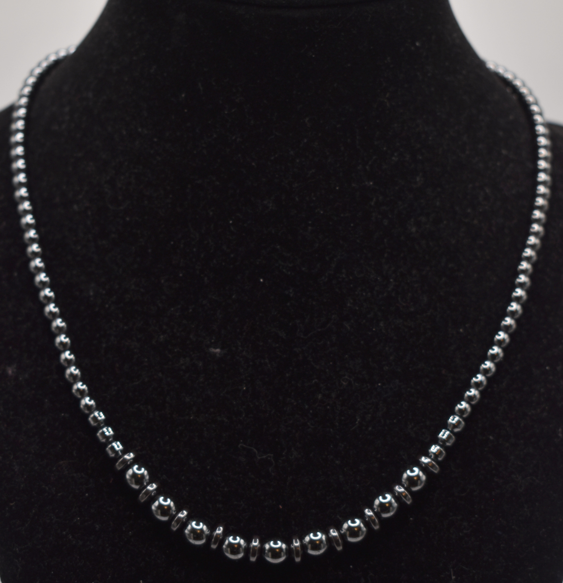 17″ – 18″ Long black pearl bead necklace.