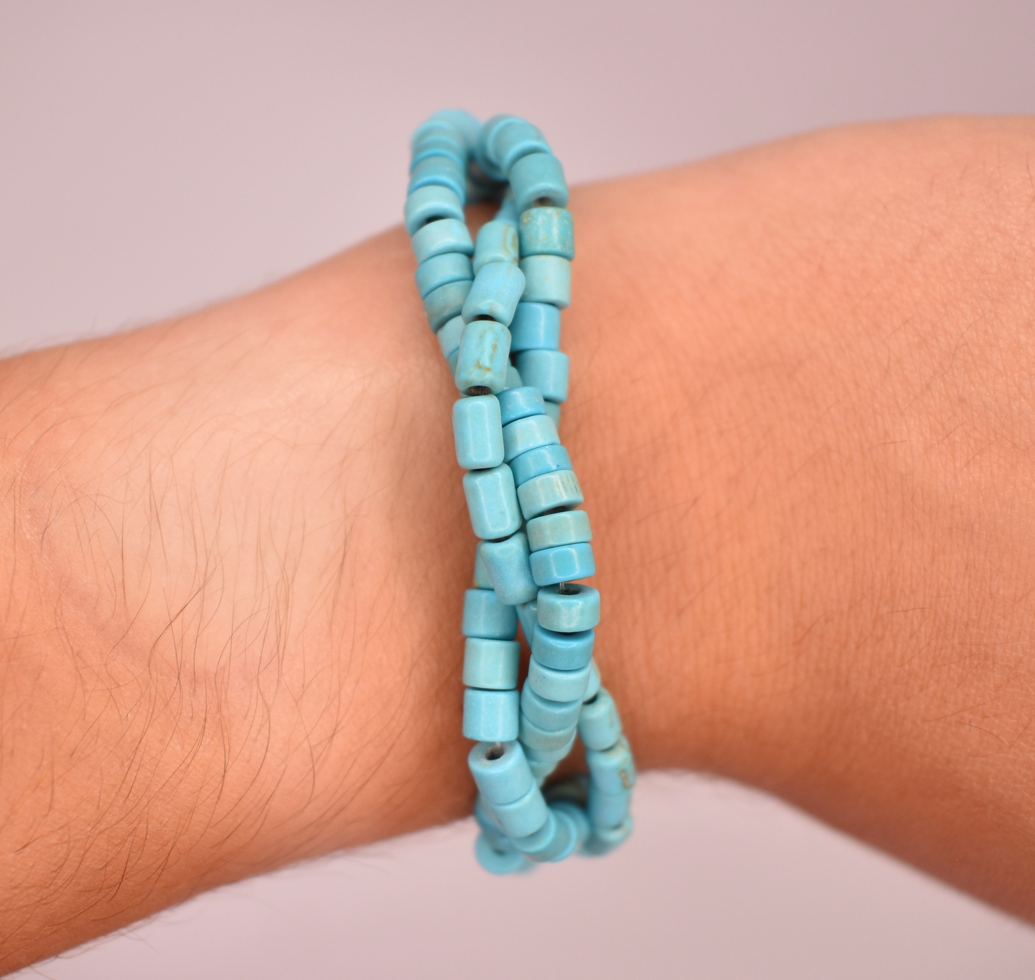 7″ – 8″ Long bracelet with turquoise beads and silver clasp.