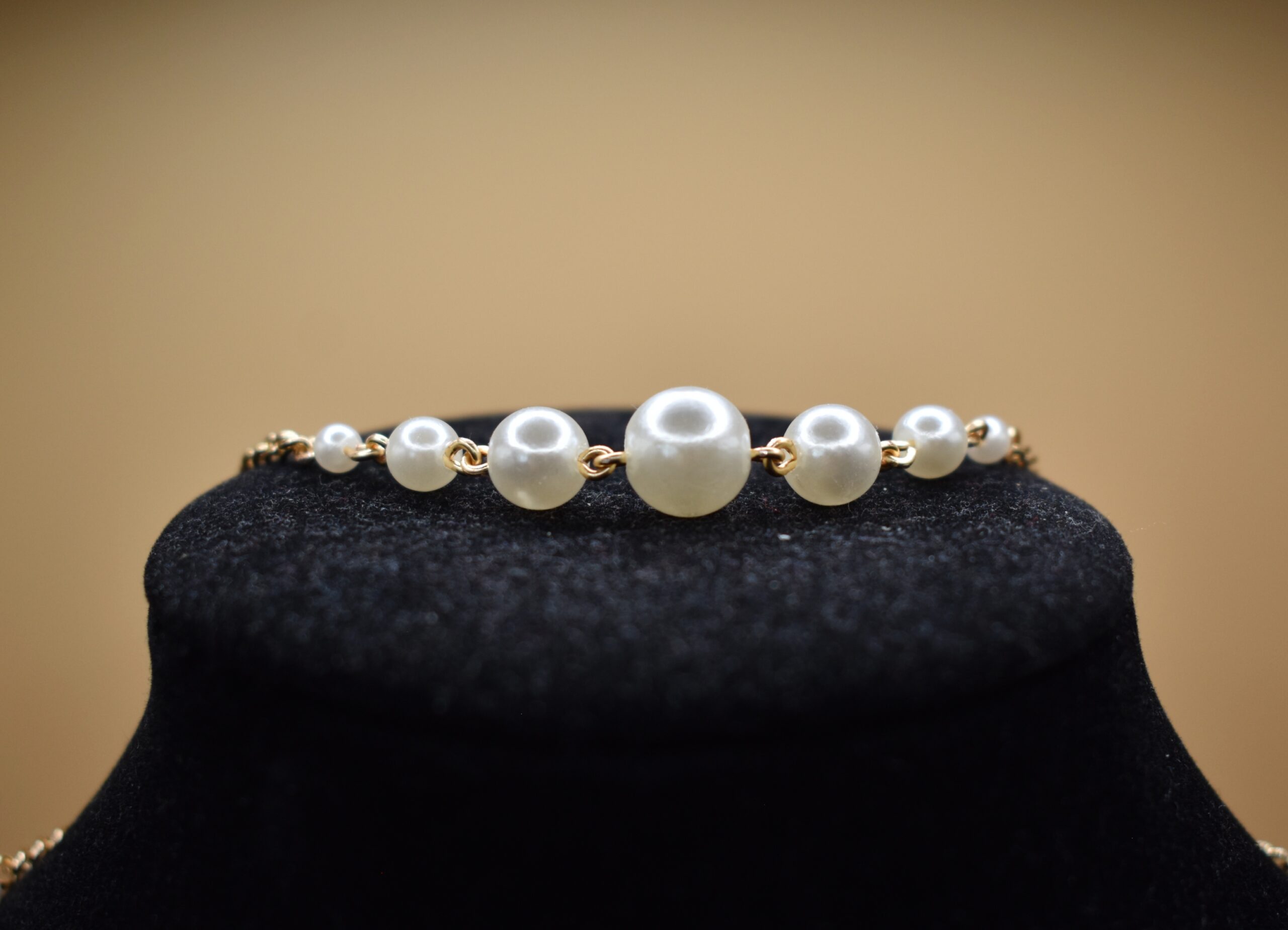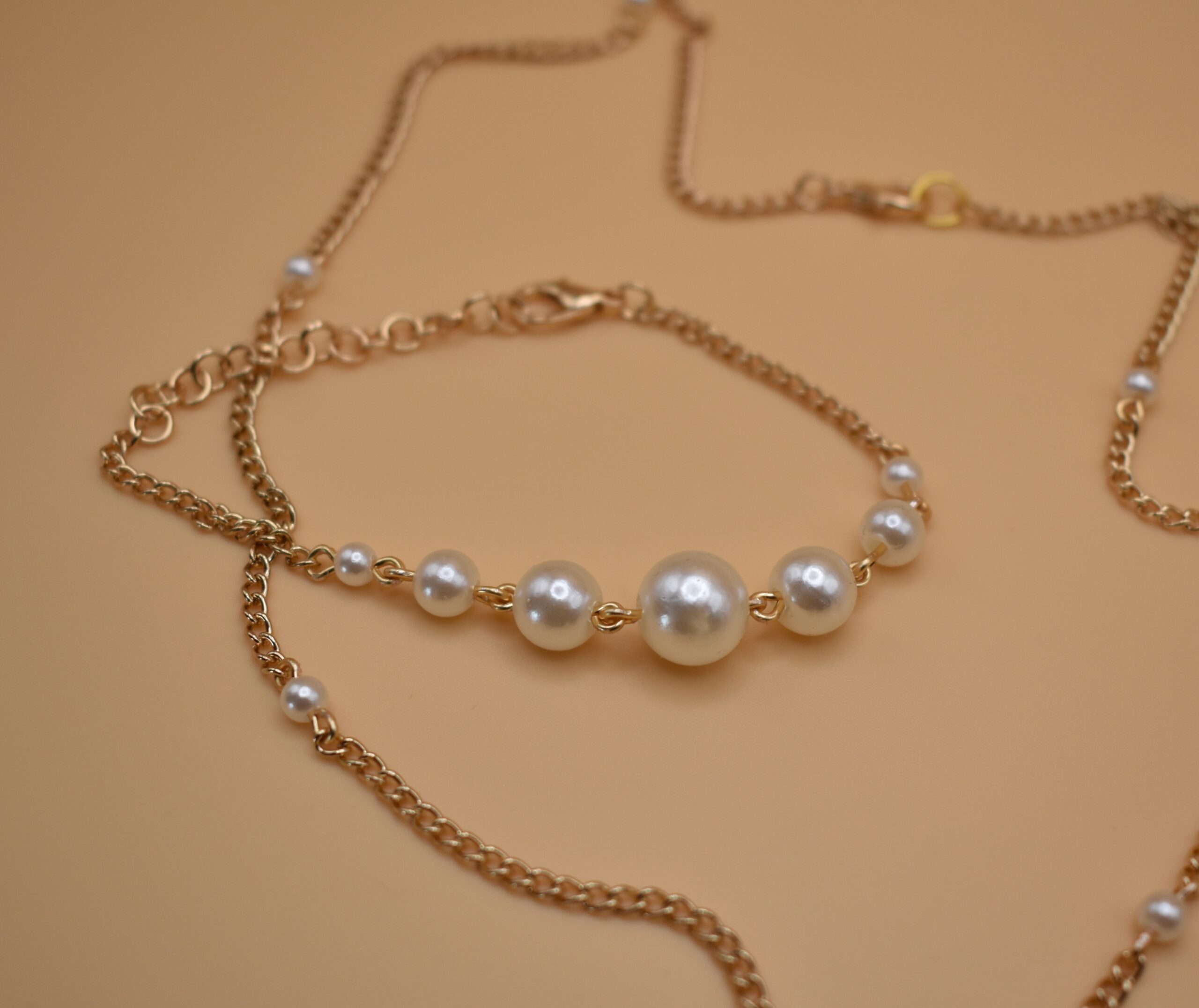 Matching 6 to 8 in. long bracelet with pearl beads.