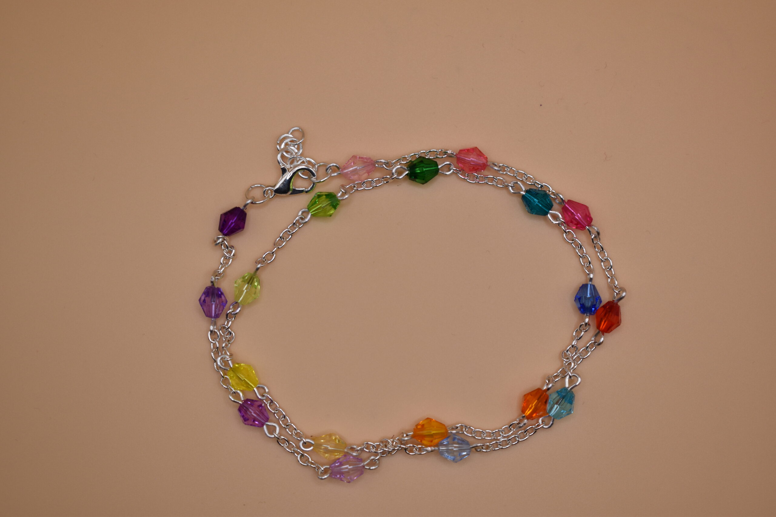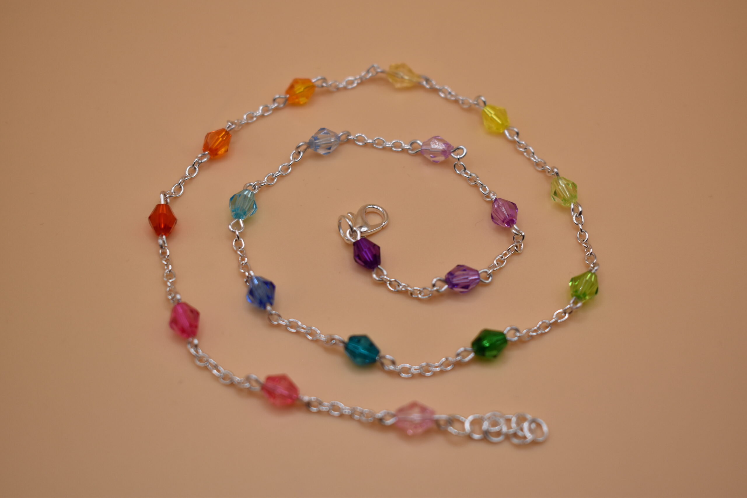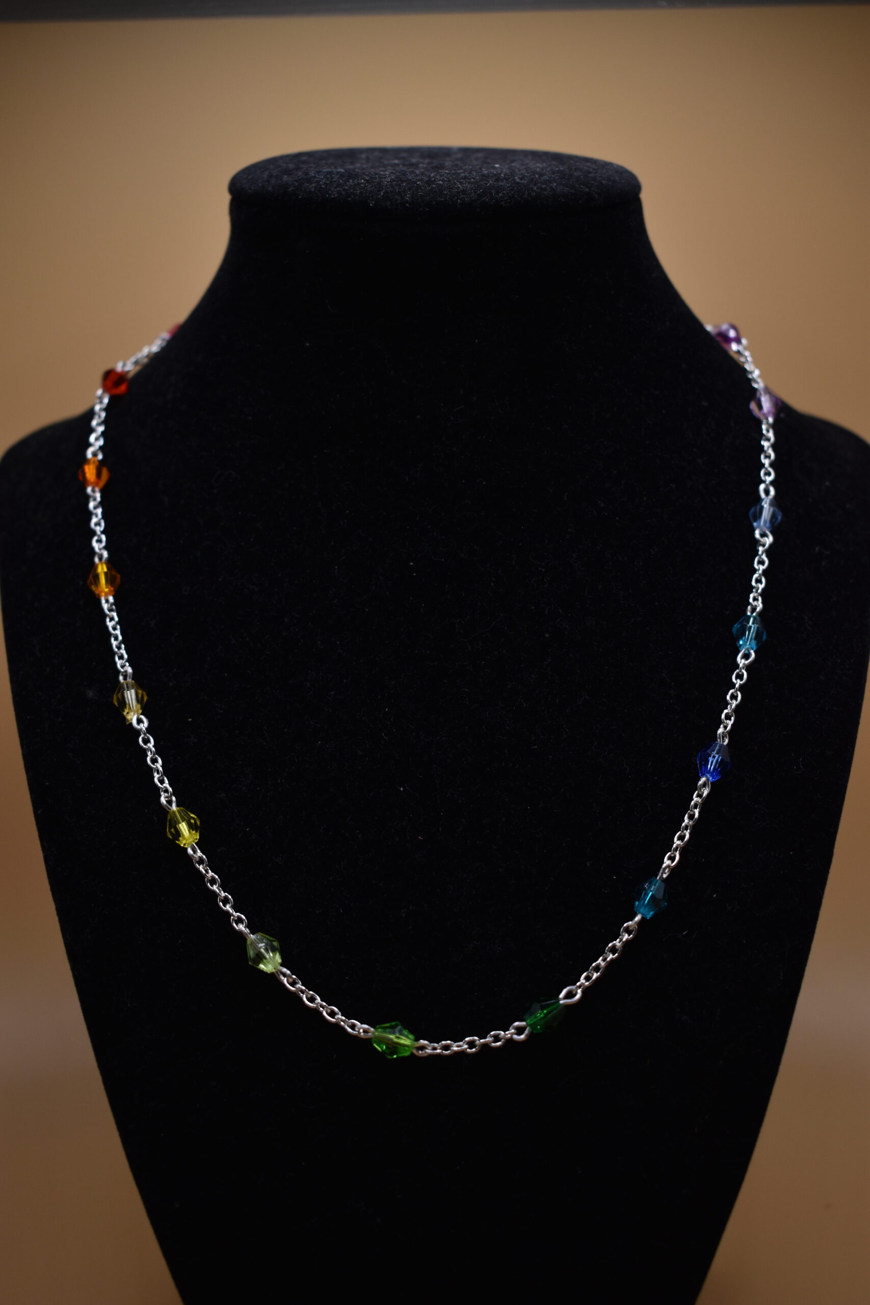 19 – 20 in. long silver necklace with beads that doubles as a bracelet.