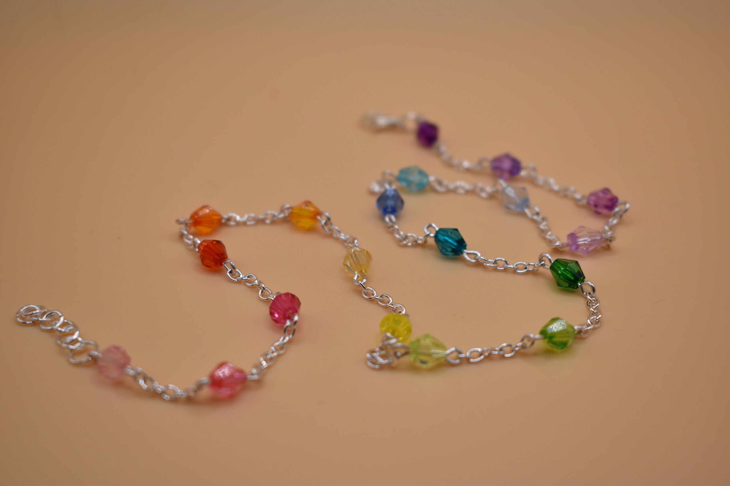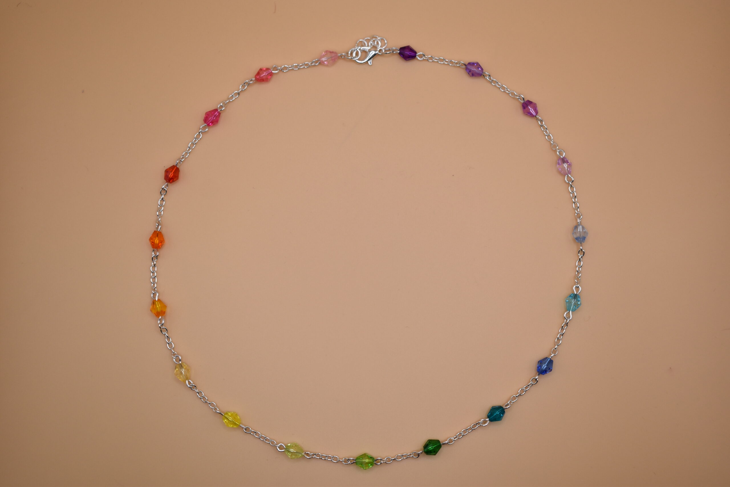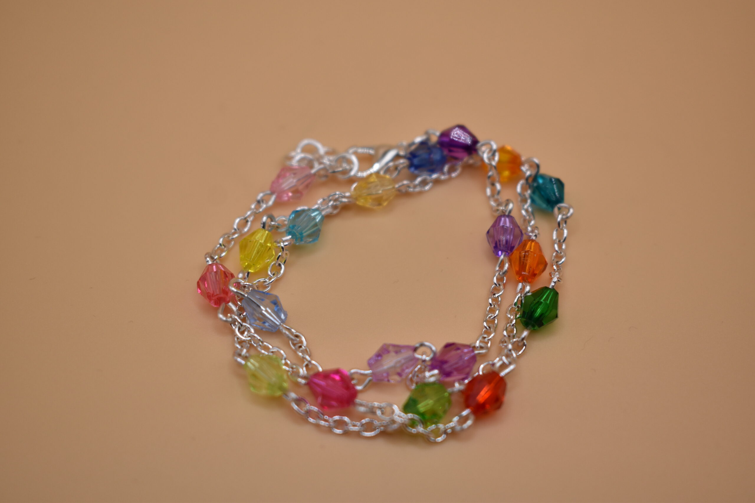 19 – 20 in. long silver necklace with beads that doubles as a bracelet.